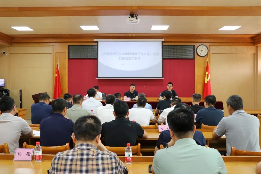 4月16日,大朗镇组织开展打击非法毛织洗水违法案件现场会,并召开毛织洗水专项整治工作会议。东莞市生态环境局大朗分局、公安分局、市场监管分局、大朗镇网格管理中心、自来水公司、毛织管委会等单位负责人及毛织协会代表、毛织片区9个村(社区)相关负责人参加会议。
