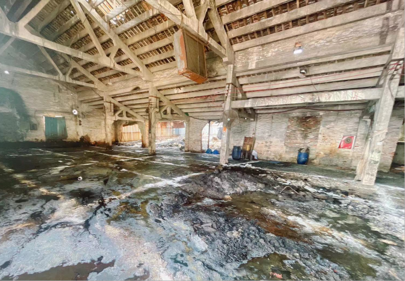 图为厂房内非法处置黑色黏稠物质