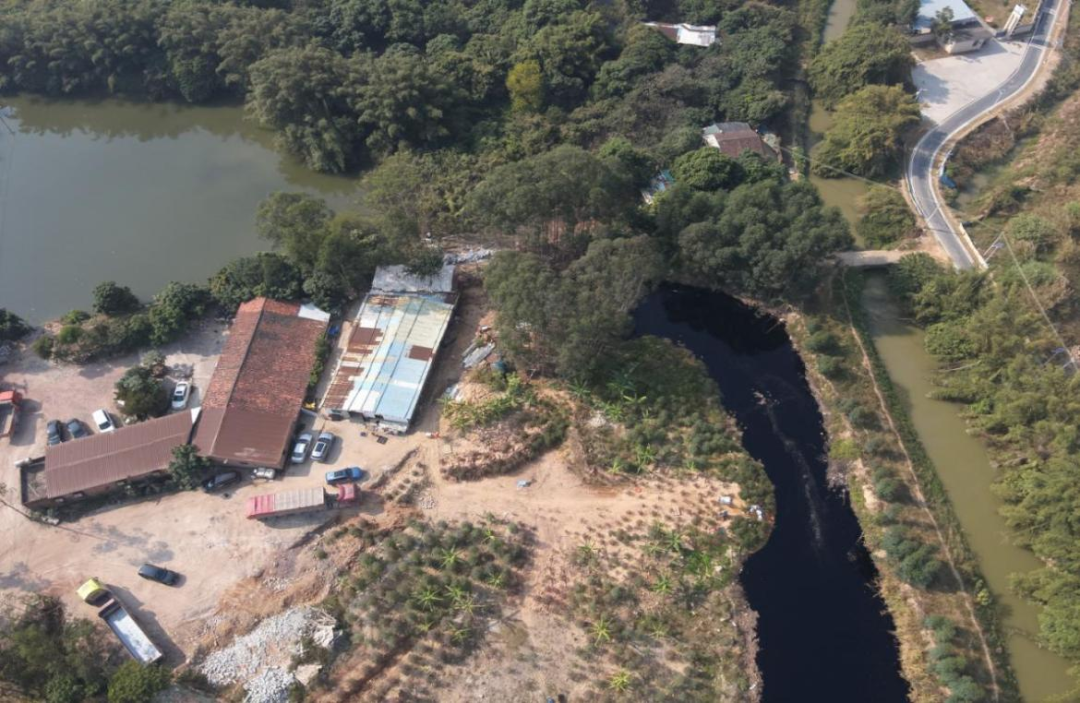 图为开展无人机巡查时发现某地坑塘异常发黑