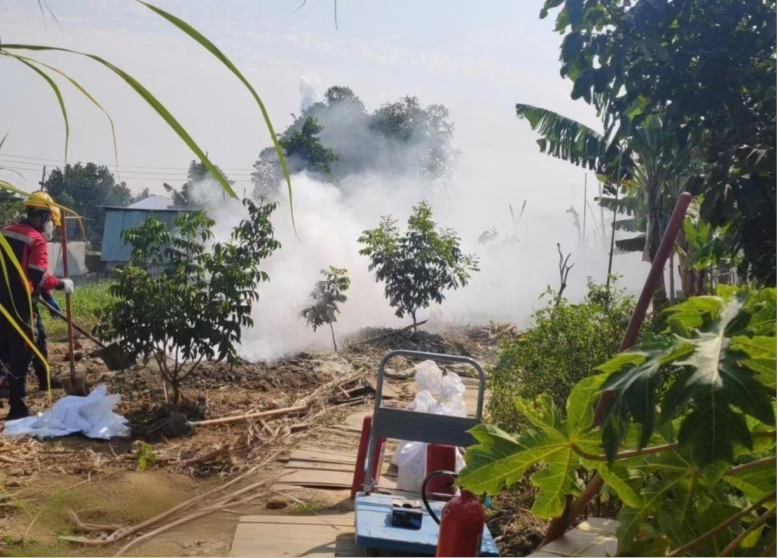2023年2月,东莞市生态环境局麻涌分局接到紧急信访反映有燃烧事件,现场弥漫大量白烟,执法人员立即赶往现场调查。经调查,白某是某公司有害生物防控事业部综合部的经理,其在接到熏蒸包移除业务后,没有向上级领导汇报私自截留熏蒸包,未按该公司业务流程进行处理,借公司业务的名义安排雷某、喻某直接找地方倾倒填埋。现场调查时,雷某、喻某正在填埋使用过的熏蒸物,熏蒸物约100公斤左右,现场有白烟冒出。执法人员委托第三方资质单位取样监测,根据危险废物鉴别报告,填埋物及沾染填埋物的土壤均属于危险废物(类别:HW04)。